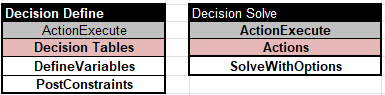 Here are two main methods “Define” and “Solve” that are pretty common for Rule Solver decision models: