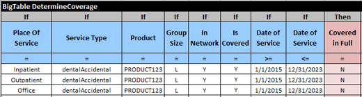Big Tables. Decision tables that contains tens of thousands rules could slow down execution if you use the standard decision tables. This release introduces a special type of decision tables called “BigTable” with a completely new execution mechanism based on a self-balancing binary search algorithm. It allowed us to achieve 100 (!) times performance improvement for really large decision tables. For example, the new sample-project “HugeTable” deals with the big table that contains more than 16,000 rules with 8 conditions and 3 conclusions, and the new execution engine evaluates this table within 1 millisecond. Read more and try it online.