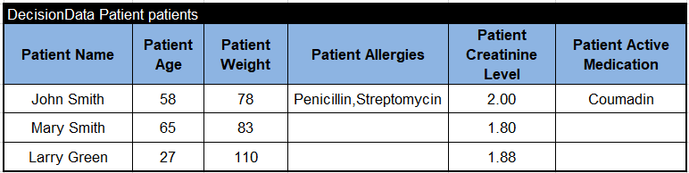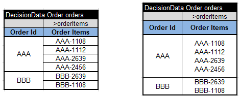 We also simplify the representation of array inside DecisionData tables. Instead of creating multiple sub-rows and merging cells in other columns (like in the left data table below) you can simply use Excel newline (Alt+Enter) in the same cell – see the right table: