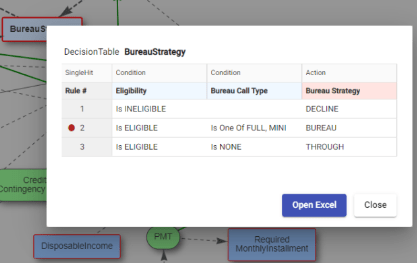 If you click on a decision table node on the decision diagram, the corresponding table immediately pops up as on this view: