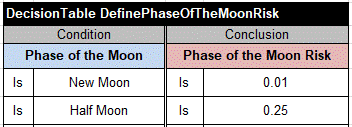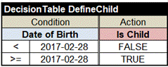 Here is an example of a Single-Hit decision table identified by the keyword “DecisionTable“: