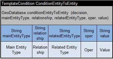 GeoDatabase.conditionEntityToEntity (decision, mainEntityType, relationship, relatedEntityType, oper, value)