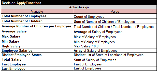 It is convenient to use these functions inside the “ActionAssign” as in the following decision table: