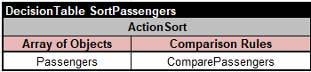 Here the array “Passengers” by itself is a decision variable defined inside the business concept “Problem”. The glossary does not include variables “Passenger1” and “Passenger2” anymore as they are local variables used only inside the table “SortPassengers”. Their names are formed by the type “Passenger” of the array of “Passengers” plus the numbers 1 and 2. See the complete sample project “SortPassengers” in the standard openrules.samples.