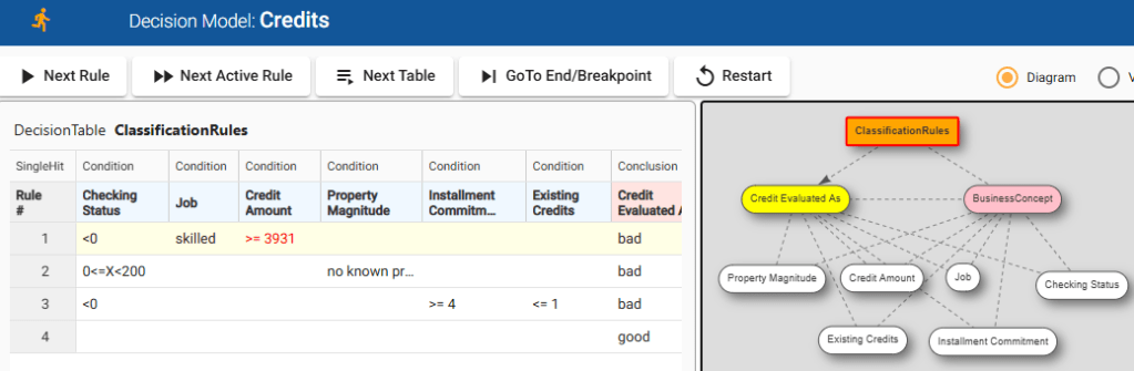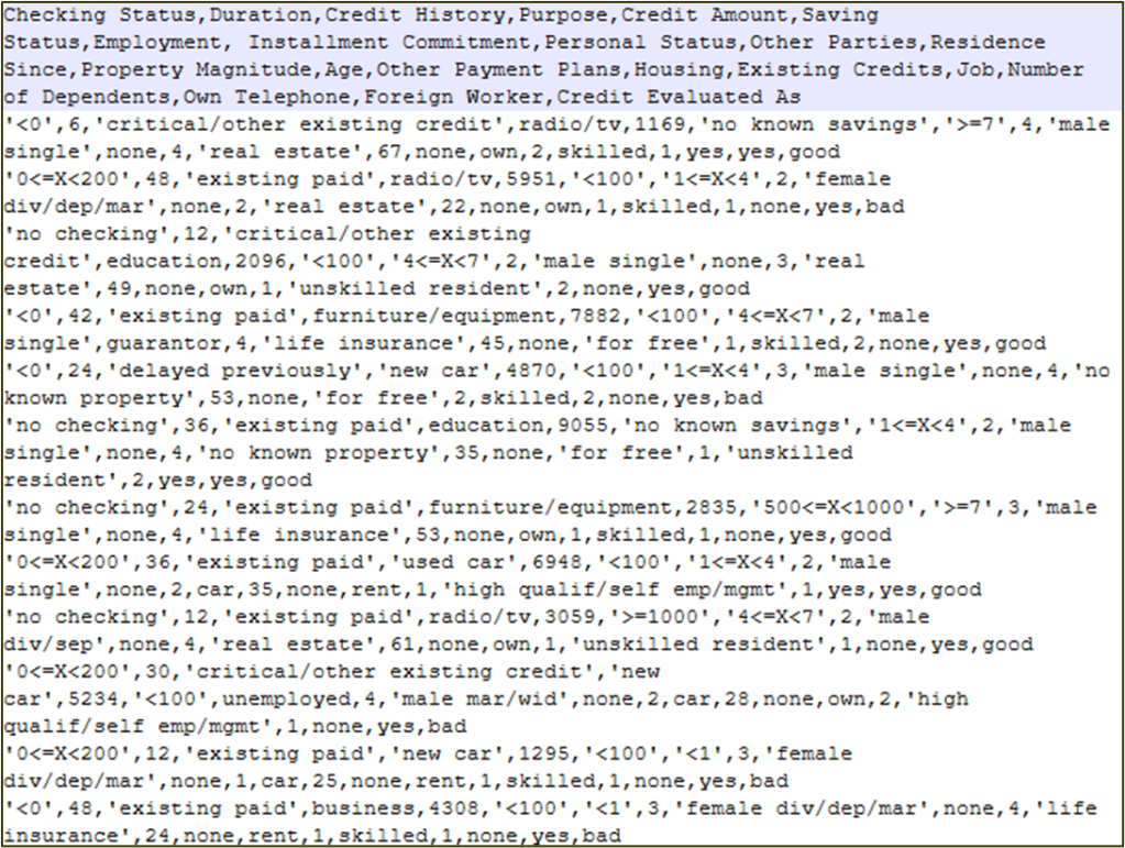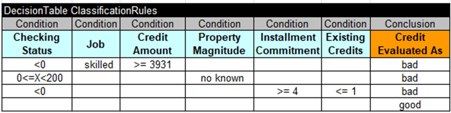 Let’s see how Rule Learner can help you to build a decision model capable of evaluating a person’s Credit Status as “good” or “bad” based on different attributes such a Checking Status, Credit History, Purpose, Credit Amount, Saving Status, Age, Employment, Foreign Worker, etc.