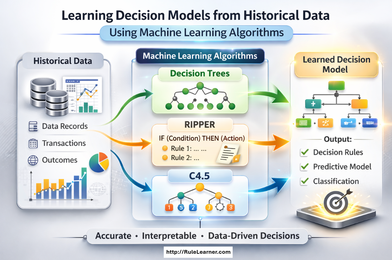 Rule Learner is a stand-alone component of OpenRules Decision Intelligence Platform. You may install it for free and analyze various examples of the automatically generated decision model by looking the installed folder “openrules.learner“.