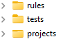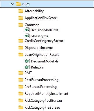 The folder “rules” represents the Rule Repository consisting of multiple sub-folders: