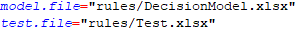 Typically, each rule repository has an entry point where its main Excel file is located. Frequently this file is called “DecisionModel.xls” or “DecisionModel.xlsx”. The physical location of this file should be defined in the local file “project.properties” using the property “model.file“. It is a good practice to also specify here the property “test.file” as an entry point in your test repository.